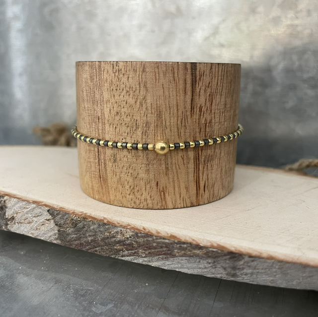 Bracelet composé d’éléments en argent 925 doré à l’or fin et de verroterie de couleur grise.