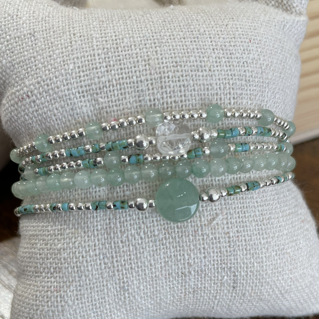 Bracelet composé d’éléments en argent 925, de verroterie et d’aventurine.
