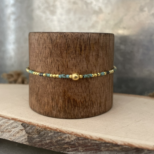 Bracelet composé d’éléments en argent 925 doré à l’or fin, de verroterie et d'un oeil serti en labradorite.