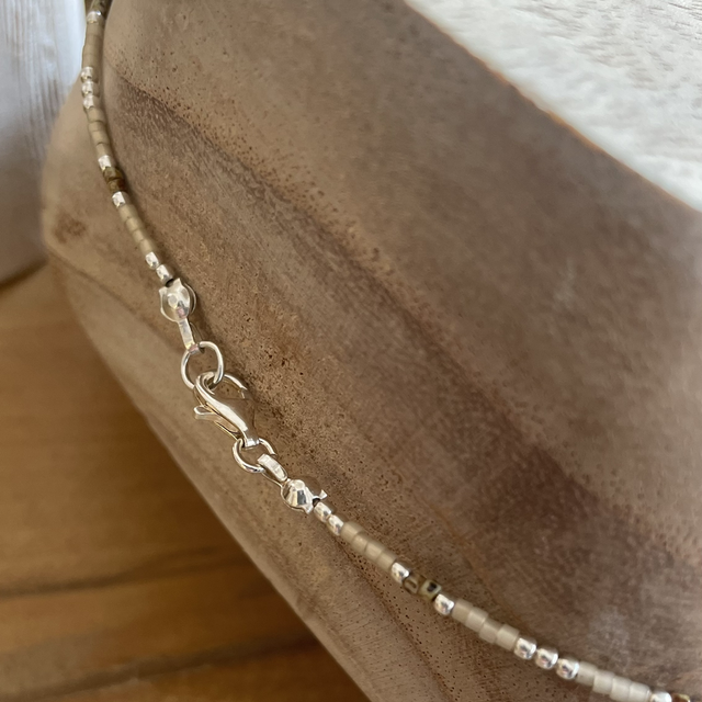 Collier composé d’argent 925 et de verroterie couleur léopard et crème avec pendentif oeil.