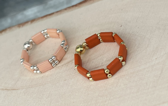Bague montée sur silicone extensible, composée d’argent 925 doré à l’or fin et de verroterie.